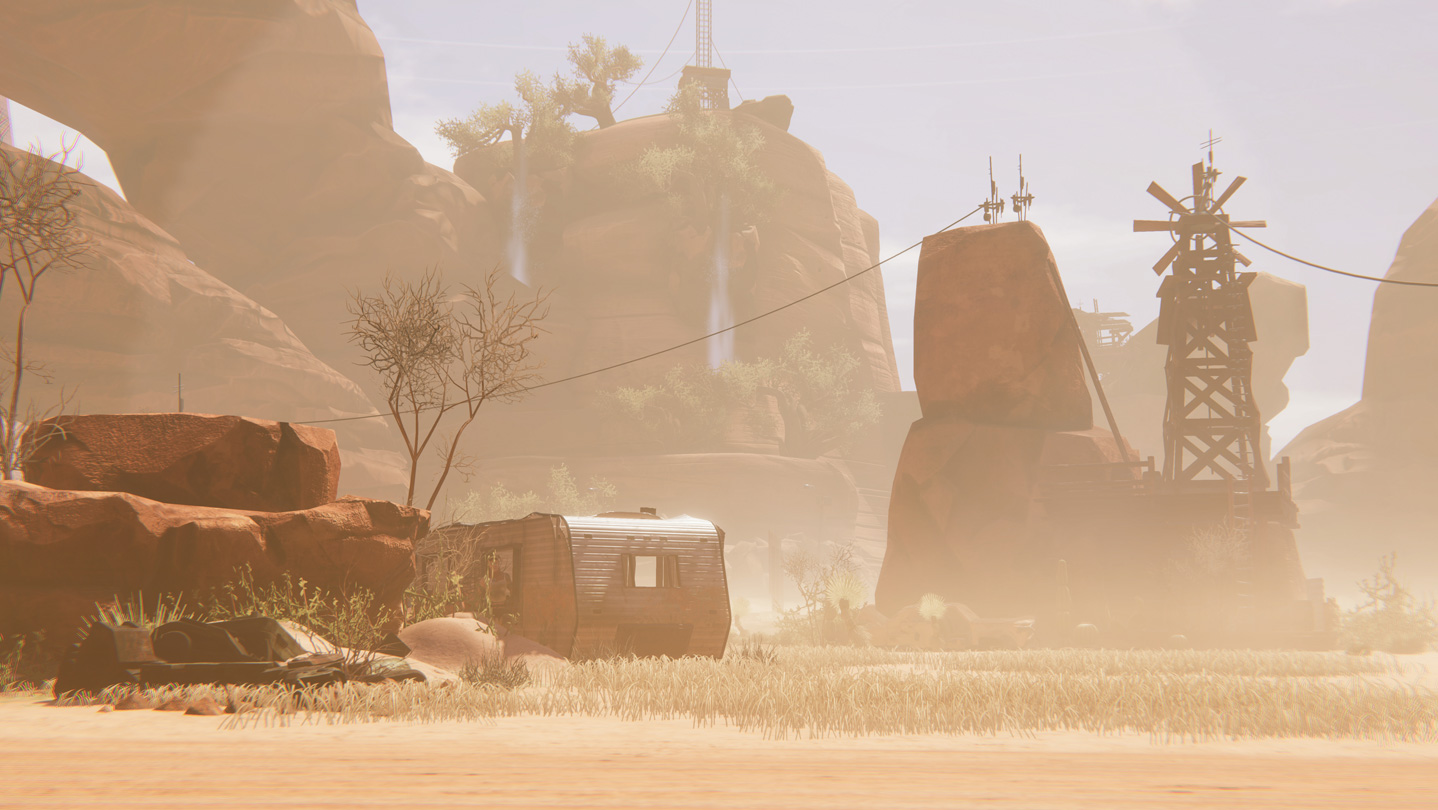 Bounty Star is an over-the-shoulder 3D action game that marries mech combat and customization with farming and base building. The player takes on the role of a broken but powerful ex-soldier named Clem, a war veteran, talented fighter and expert mech pilot. Clem attempts to shed the guilt and shame of her past and become a legitimate force for good in the Red Expanse, a post-post-apocalyptic version of the American Southwest.