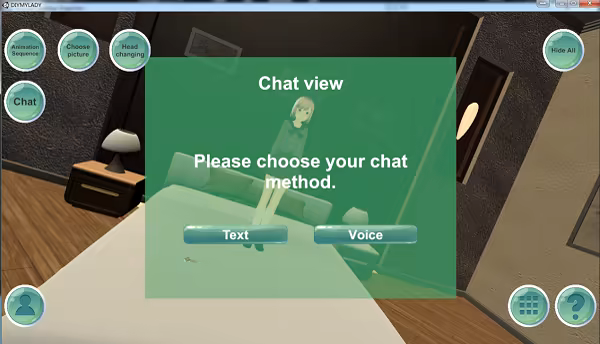 Note: Players can personalize their interactions with their girl avatar, as shown in the above example. They can type specific words or phrases through the provided virtual keyboard and then set how their girl avatar reacts to them. By doing so, players will only need to speak these words or phrases via the microphone, and their girl avatar will respond accordingly.