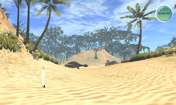 The game is constantly under development to improve the demand functions recognized by the girl avatar. Thus, players can enjoy more demand functions in the future. Currently, the girl avatar can feel thirsty and drink water in some scenes (not all). She also displays excitement about playing with dinosaurs on the Dinosaur Island scene.