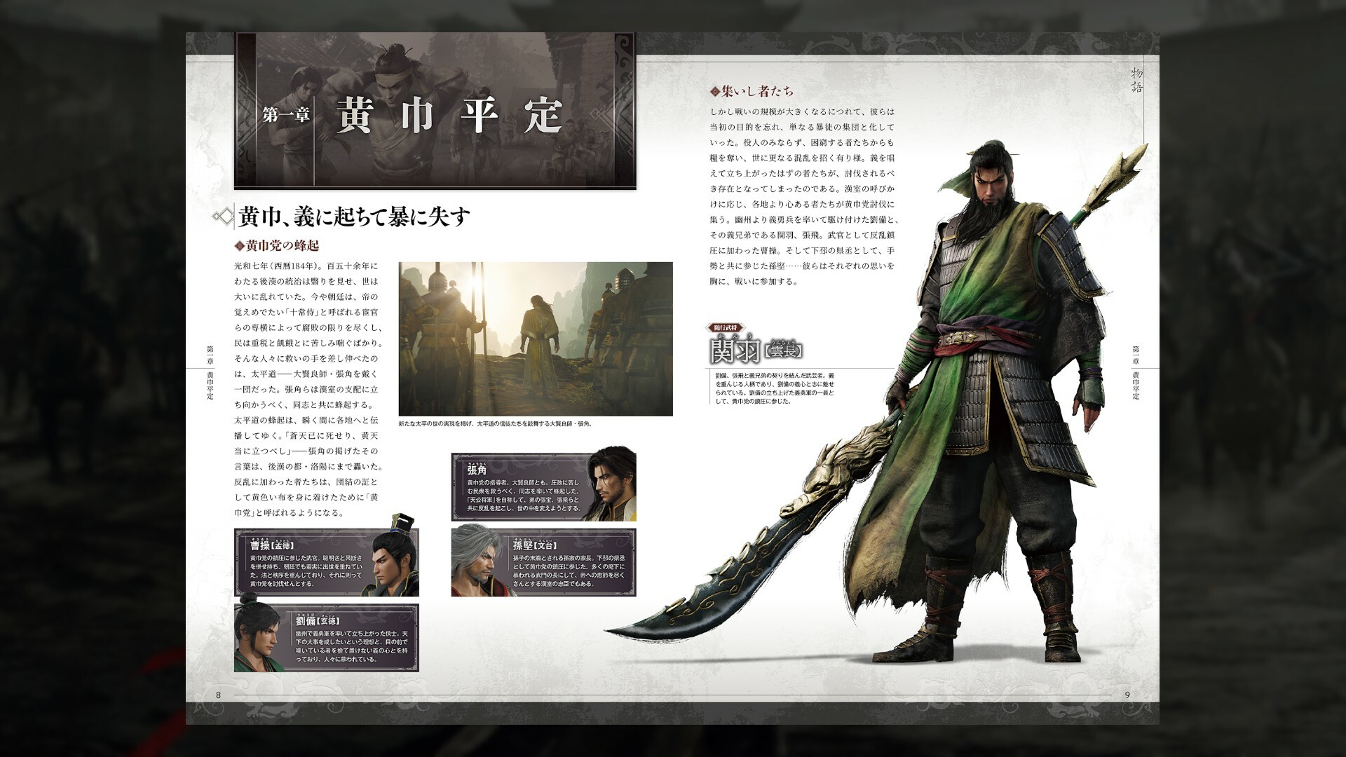 The Official Book is full of original illustrations of major events in the Three Kingdoms period, along with never-before-seen information about characters and charts depicting their relationships to one another, all centered around the grand story of the new "DYNASTY WARRIORS," told from the perspective of a single protagonist. It can be viewed by accessing the main menu and then Special Content, and selecting "Official Book."