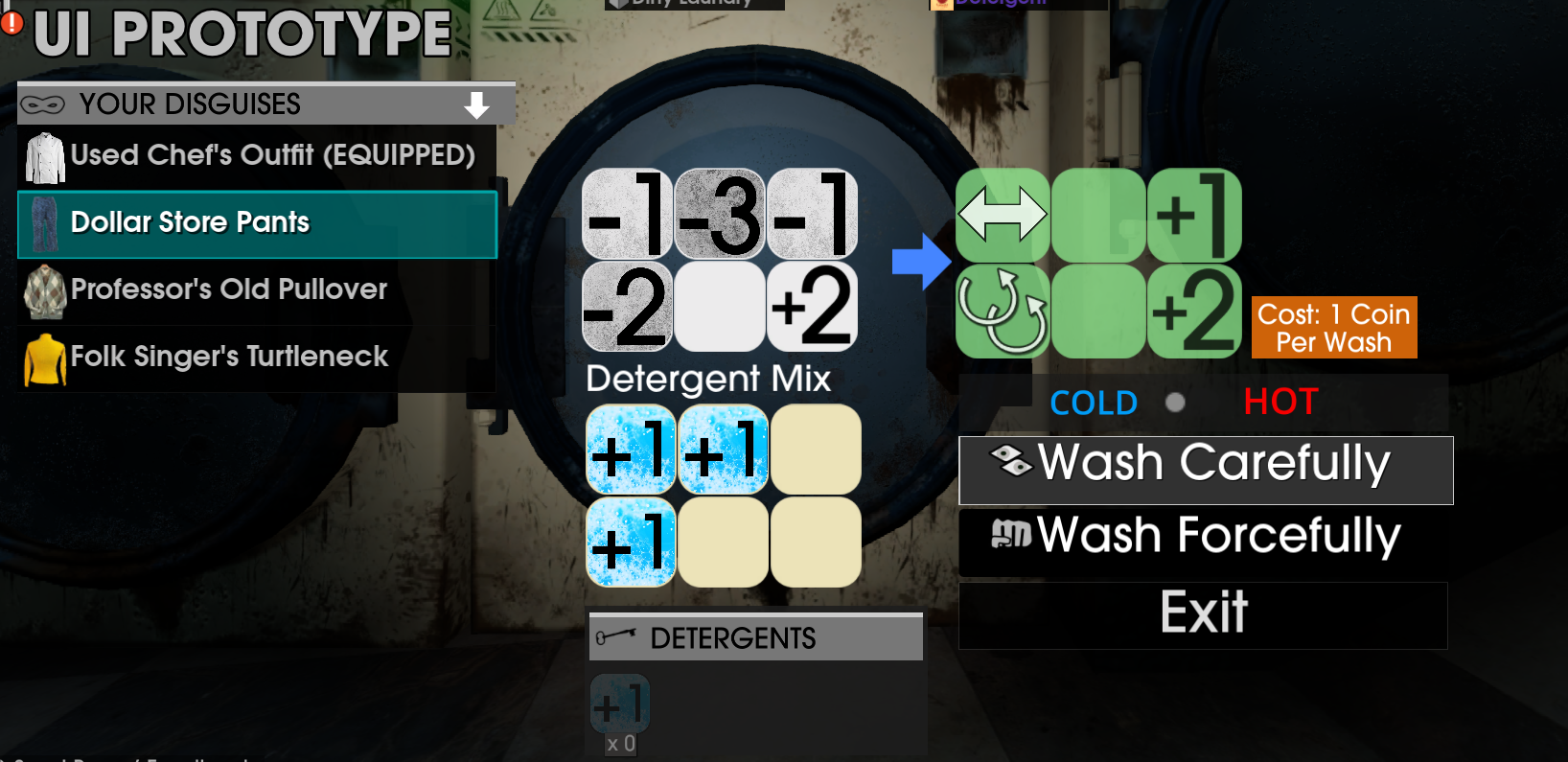 Prototype UI of the washing system.