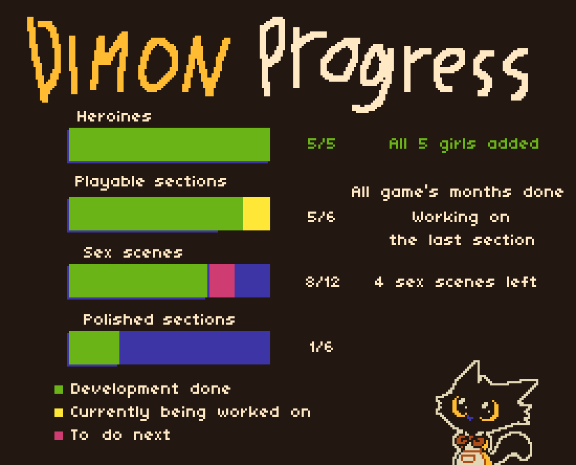 cool game. even to me, hater of visual novels. fun visual and character of dimon. and, of course, nice and not so fking hard grind system. ill buy game on release day. and if you will plan translate game to another languages, i can help with russian\ukranian. keep it going